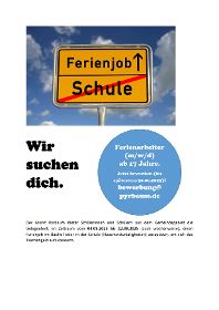 Der Markt Pyrbaum bietet Schülerinnen und Schülern ab 17 Jahre aus dem Gemeindegebiet die Gelegenheit, im Zeitraum vom 04.08.2025 bis 12.09.2025 (auch wochenweise), einen Ferienjob im Bauhof oder in der Schule (Hausmeistertätigkeiten) auszuüben, um sich das Taschengeld aufzubessern.